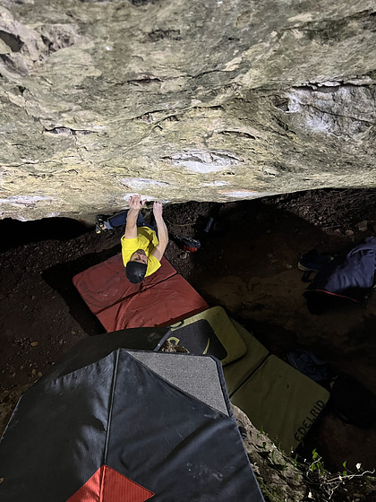 Luis Herrerias Valls • Mon Dec 8 22:32:31 2025added video betaEl Templo stand (7A+), Cueva de al lado